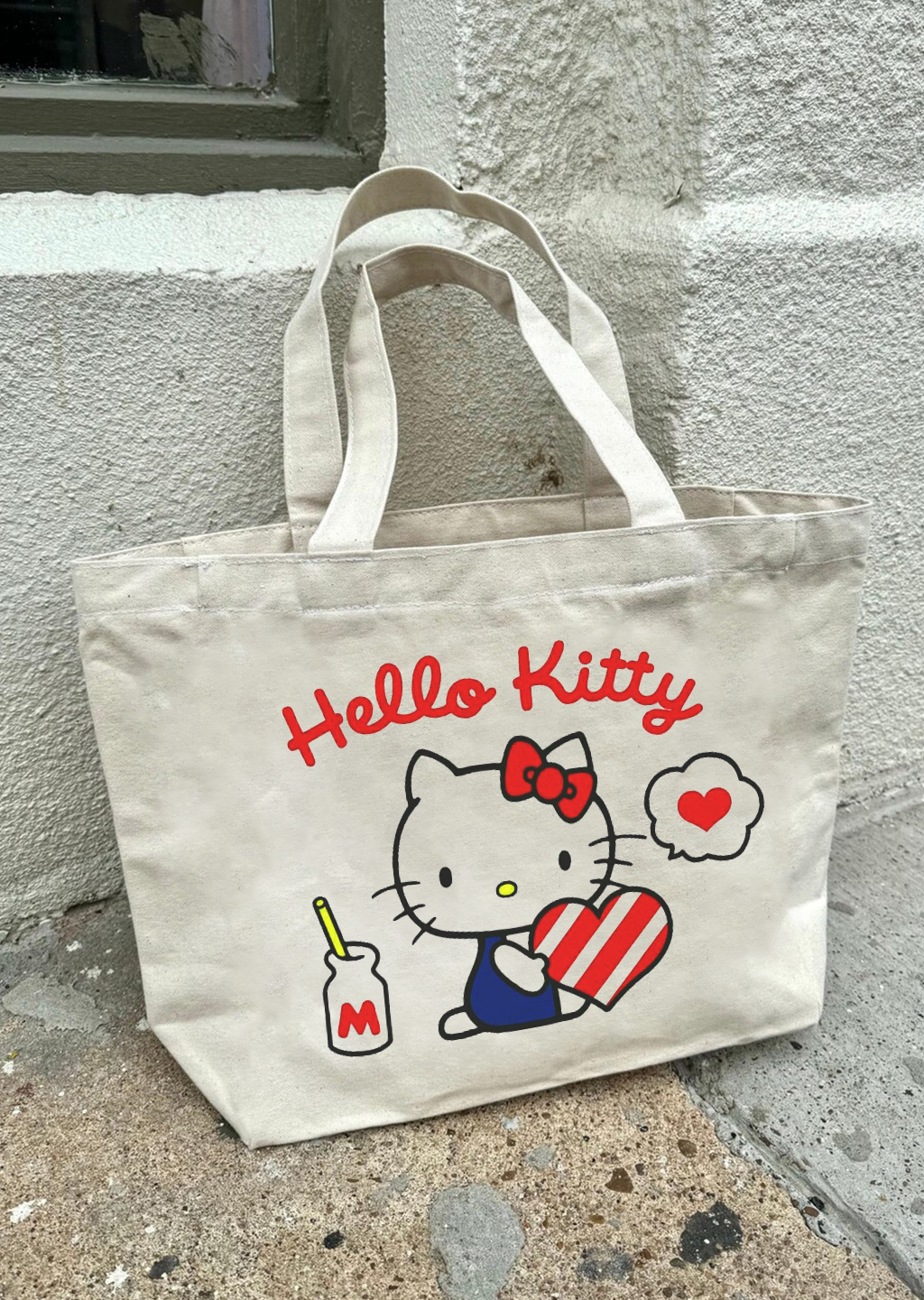 Ana Sayfa Kanvas Bez Çanta Hello Kitty Baskılı Kadın Büyük Boy Omuz Çantası