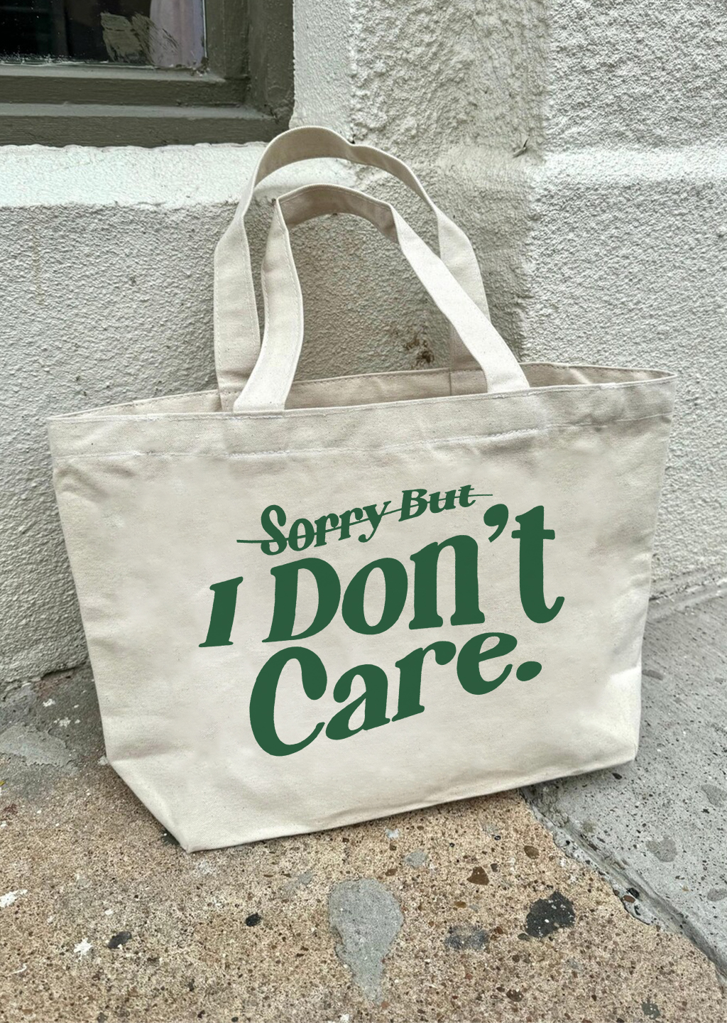 Ana Sayfa Kanvas Bez Çanta ‘I don’t care’ Baskılı Kadın Büyük Boy Omuz Çantası